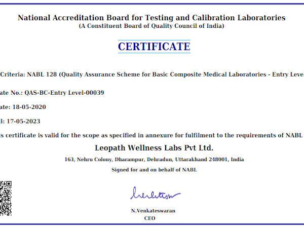 At Leopath Wellness Labs we are in a regular upgrading phase in terms of testing, technology, quality and training. We firmly belief that a good and an honest laboratory can minimize doctor visits and aid in correct swift diagnosis of diseases. At our center we try and follow this basic need and in pursuit we have been accredited with NABL (qas-bc) by Quality council of India